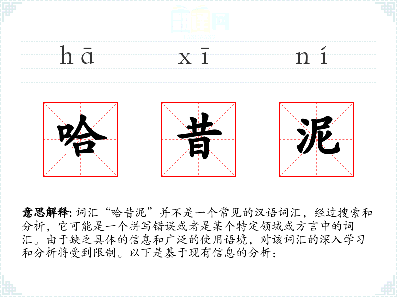 由于“哈昔泥”不是一个标准汉语词汇,无法给出确切的基本定义。