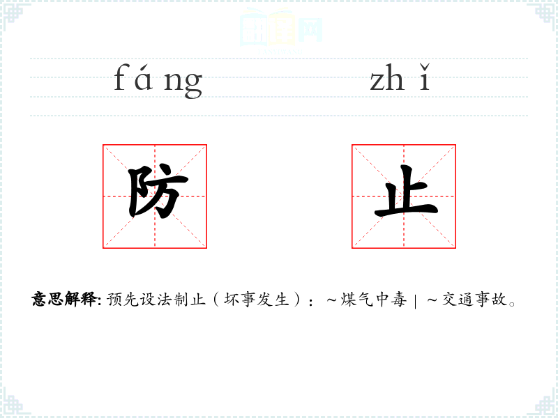 预先设法制止(坏事发生):~煤气中毒|~交通事故。