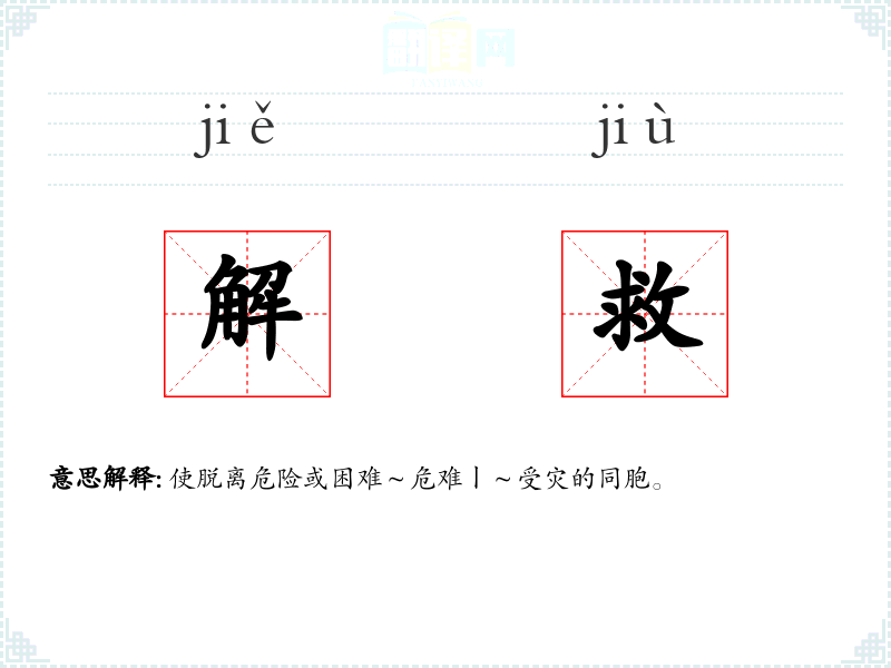 使脱离危险或困难~危难ㄧ~受灾的同胞。
