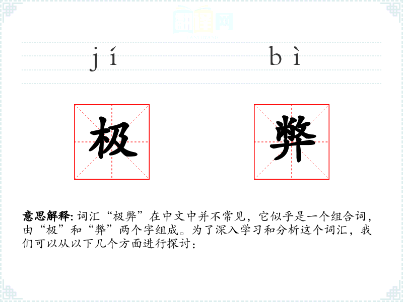 词汇“极弊”在中文中并不常见,它似乎是一个组合词,由“极”和“弊”两个字组成。为了深入学习和分析这个词汇,我们可以从以下几个方面进行探讨: