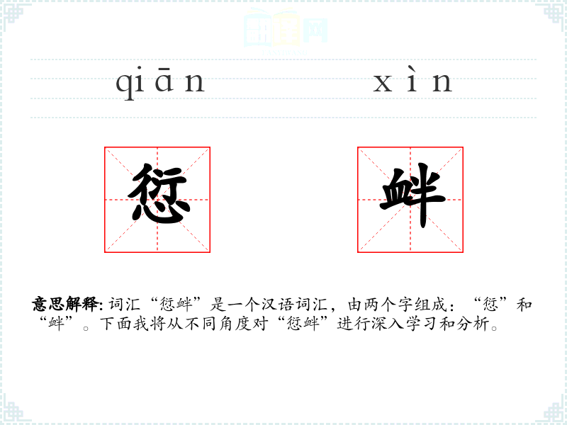 词汇“愆衅”是一个汉语词汇,由两个字组成:“愆”和“衅”。下面我将从不同角度对“愆衅”进行深入学*和分析。