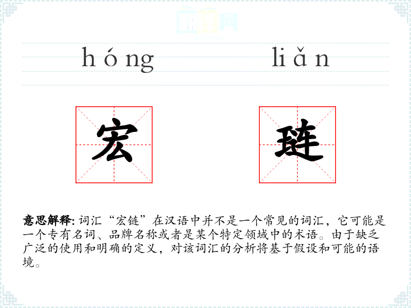 词汇“宏链”在汉语中并不是一个常见的词汇,它可能是一个专有名词、品牌名称或者是某个特定领域中的术语。由于缺乏广泛的使用和明确的定义,对该词汇的分析将基于假设和可能的语境。