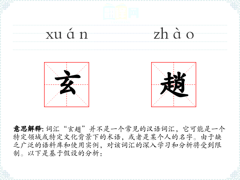 由于“玄趙”不是一个常见的词汇,以上的分析大多是基于假设和推测。如果能够提供更多的上下文信息,分析将更加准确和深入。