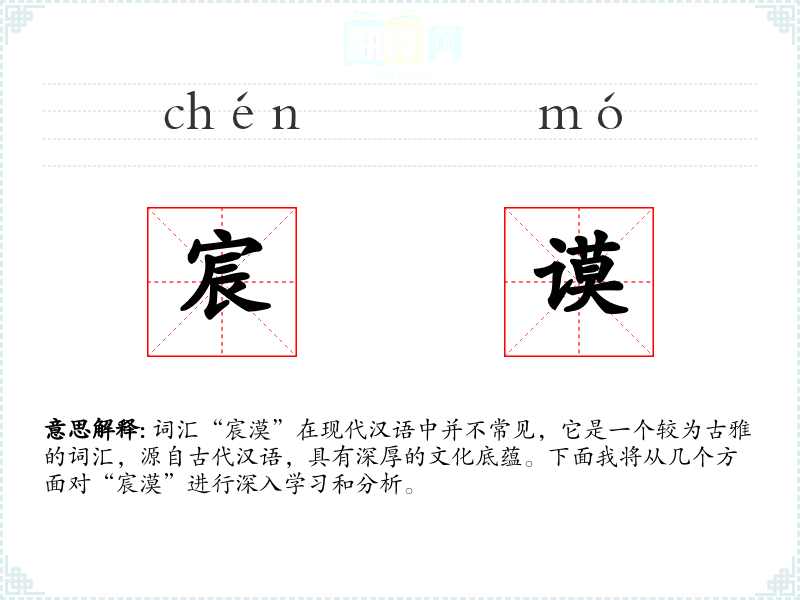 “宸”字最早见于《说文解字》,“漠”字则更早,见于《诗经》等古籍。随着历史的发展,“宸漠”这个词汇逐渐淡出日常用语,但在文学和历史研究中仍有一定的使用频率。