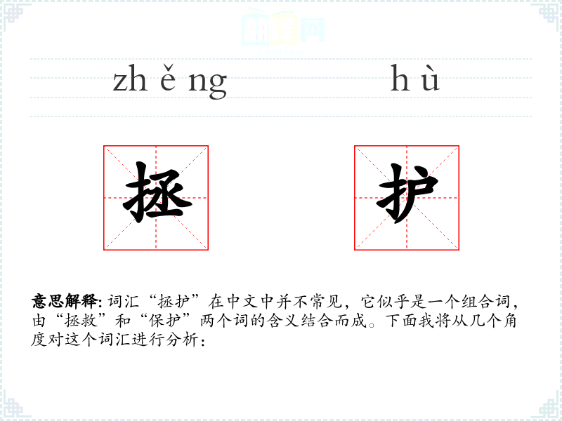 词汇“拯护”在中文中并不常见,它似乎是一个组合词,由“拯救”和“保护”两个词的含义结合而成。下面我将从几个角度对这个词汇进行分析: