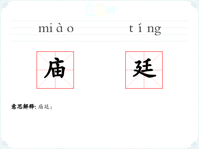 - 情感反应:庙廷一词常带有一种庄严和神圣的情感。