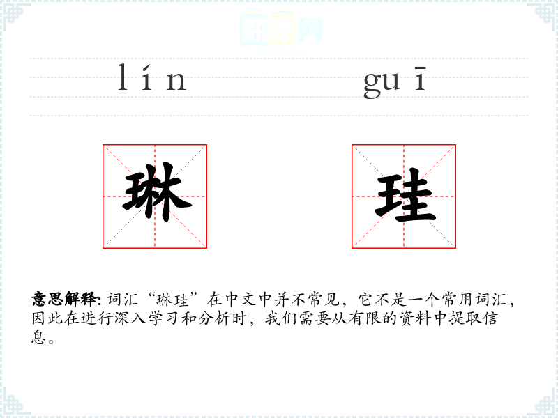 - 反义词:无(由于“琳珪”不是一个常用词汇,反义词不明确)
