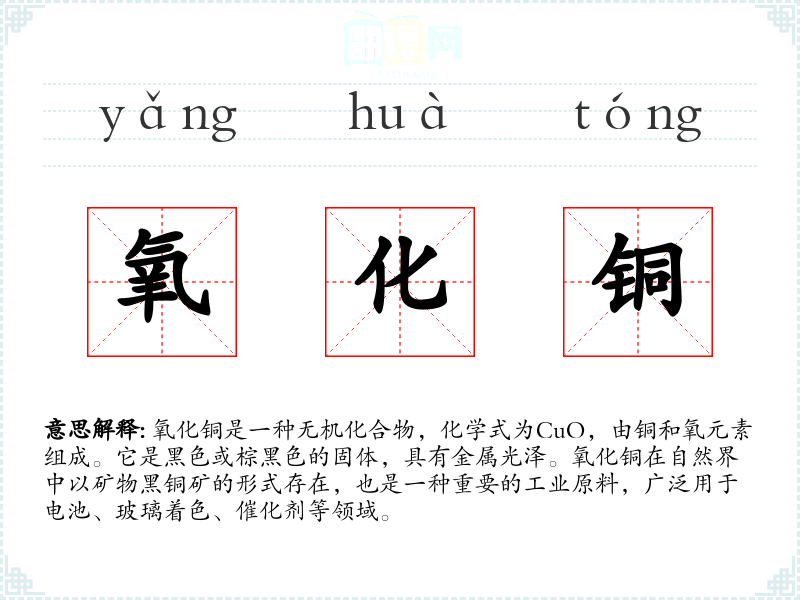 "氧化铜"的意思解释、氧化铜是什么意思由翻译网汉语词典查词提供。