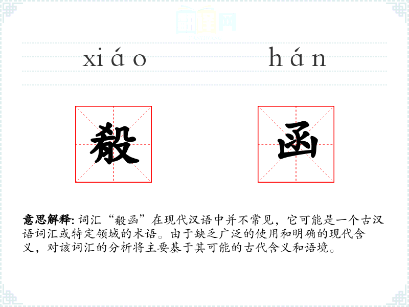 “殽”字在古代汉语中有混杂、混合之意,“函”则指容器或包裹。这两个字组合起来,形成了描述内容复杂、多样的容器或包裹的词汇。随着时间的推移,这个词汇可能因为其特定性和古旧性而逐渐淡出日常语言使用。