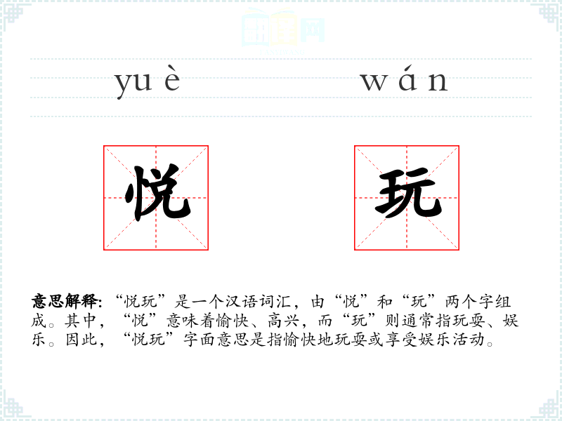 "悦玩"的意思解释、悦玩是什么意思由翻译网汉语词典查词提供。