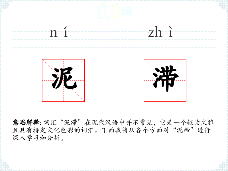 词汇“泥滞”在现代汉语中并不常见,它是一个较为文雅且具有特定文化色彩的词汇。下面我将从各个方面对“泥滞”进行深入学*和分析。
