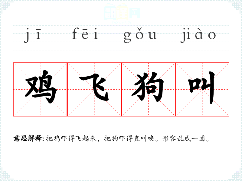 把鸡吓得飞起来,把狗吓得直叫唤。形容乱成一团。