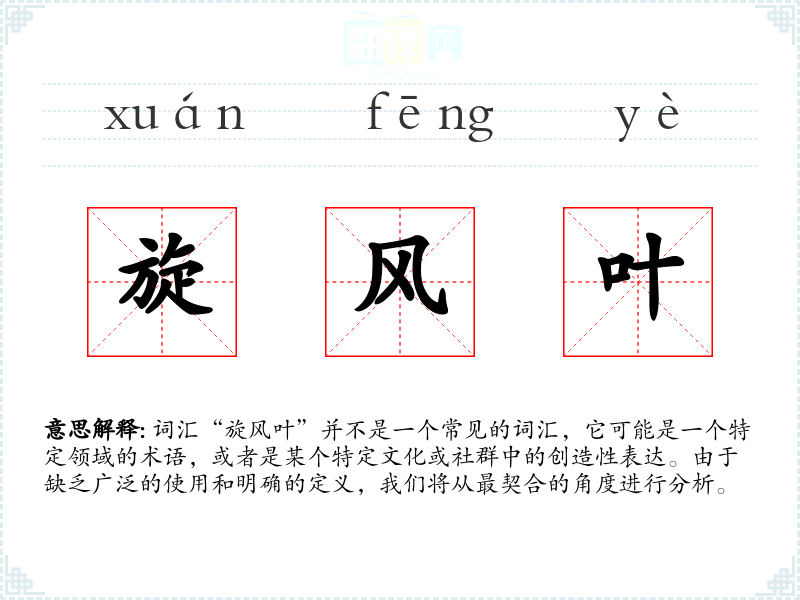 由于“旋风叶”不是一个常见的词汇,它在不同语言或文化中的对应词汇可能不明确。在其他语言中,可能会有类似的表达,用于描述类似的动态或结构。