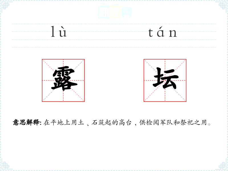 在平地上用土﹑石筑起的高台﹐供检阅军队和祭祀之用。