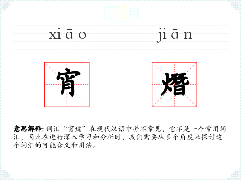 词汇“宵燸”在现代汉语中并不常见,它不是一个常用词汇,因此在进行深入学习和分析时,我们需要从多个角度来探讨这个词汇的可能含义和用法。