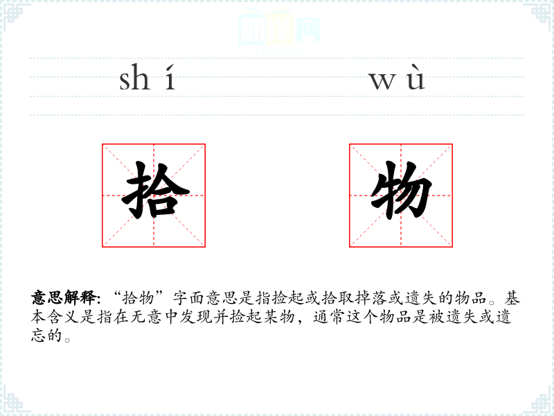 "拾物"的意思解释、拾物是什么意思由翻译网汉语词典查词提供。
