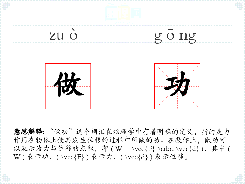 "做功"的意思解释、做功是什么意思由翻译网汉语词典查词提供。