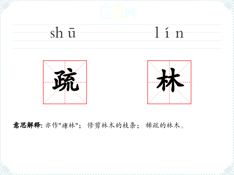 亦作"痚林"; 修剪林木的枝条; 稀疏的林木。