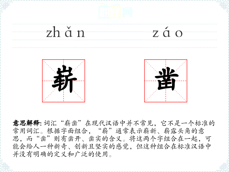 由于“崭凿”不是一个标准词汇,我们无法给出一个确切的基本定义。它可能是某个特定领域或方言中的词汇,或者是某个作者创造的新词。