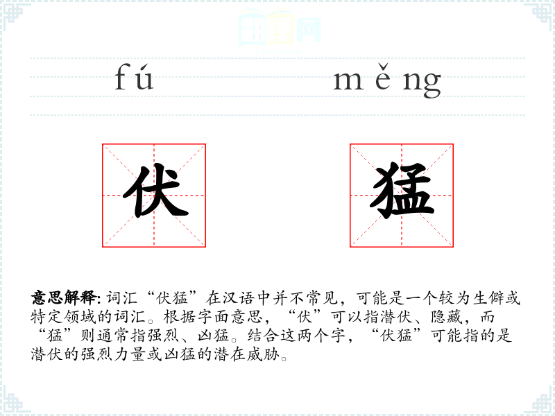 由于“伏猛”不是一个常用词汇,其词源和演变可能不太明确。但从字面上看,“伏”和“猛”都是古代汉语中常见的词汇,结合在一起可能是为了强调某种潜在的强烈力量。