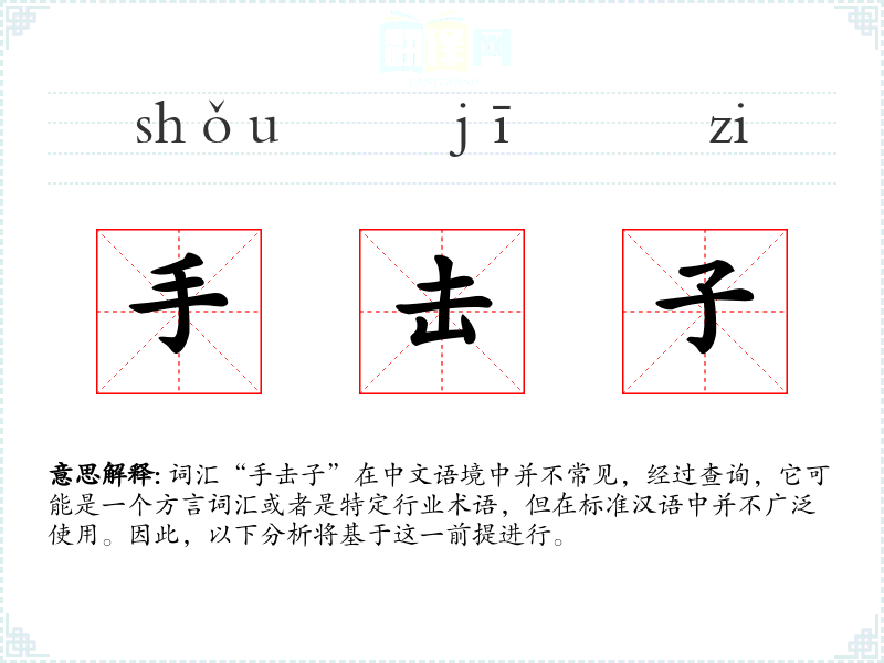 词汇“手击子”在中文语境中并不常见,经过查询,它可能是一个方言词汇或者是特定行业术语,但在标准汉语中并不广泛使用。因此,以下分析将基于这一前提进行。