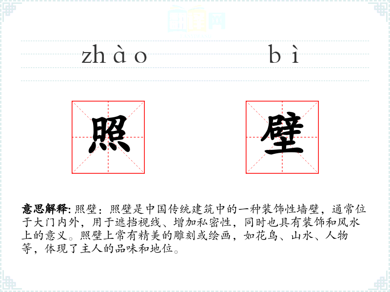 "照壁"的意思解释、照壁是什么意思由翻译网汉语词典查词提供。