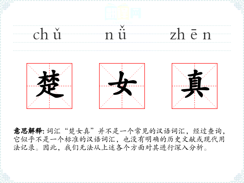 然而,如果我们从字面意思来推测,“楚女真”可能是一个由三个汉字组成的词汇: