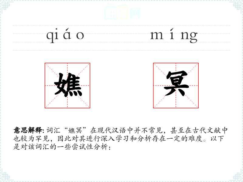词汇“嫶冥”在现代汉语中并不常见,甚至在古代文献中也较为罕见,因此对其进行深入学习和分析存在一定的难度。以下是对该词汇的一些尝试性分析:
