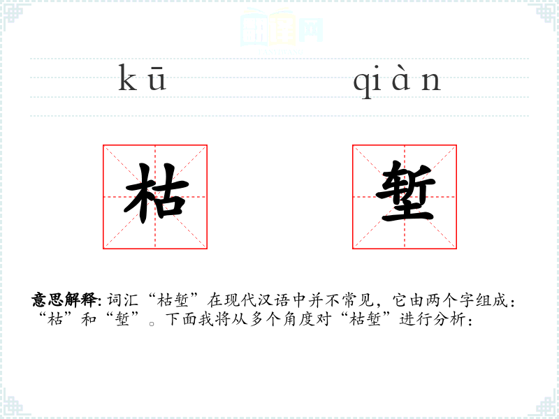 - 词源:“枯”和“堑”都是古代汉语词汇,历史悠久。