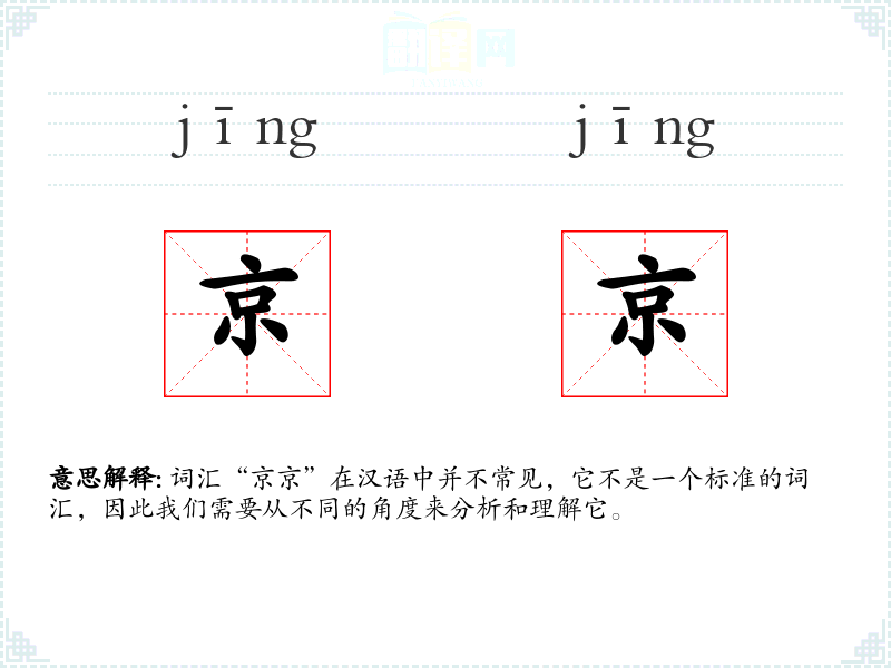 词汇“京京”在汉语中并不常见,它不是一个标准的词汇,因此我们需要从不同的角度来分析和理解它。