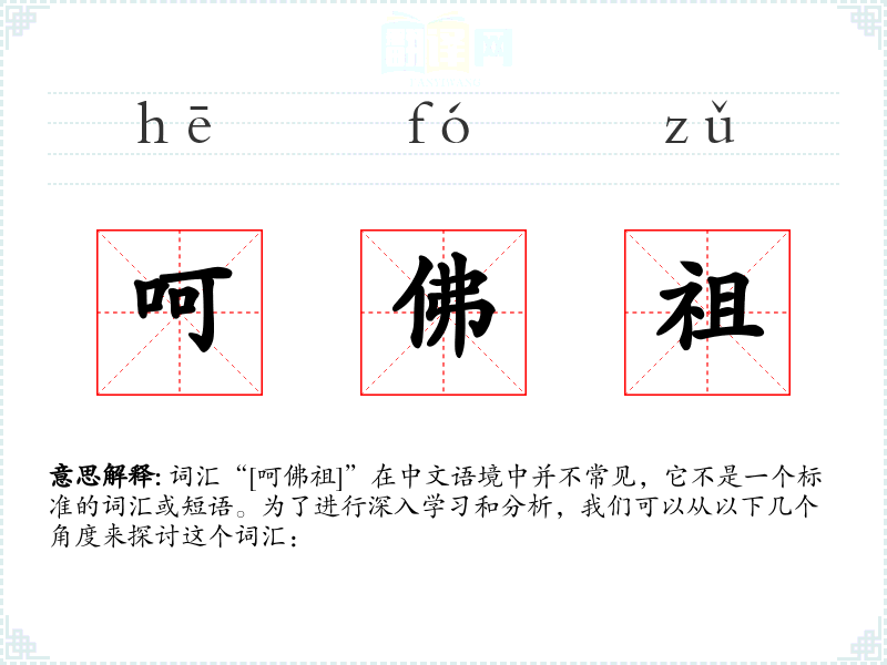 由于“[呵佛祖]”不是一个常用词汇,它在不同语境下的使用非常有限。可能在一些特定的文学作品或网络用语中出现,但具体情况需要具体分析。