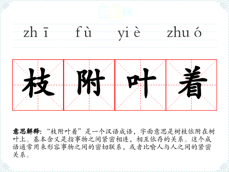 在传统文化中,强调家族和集体的和谐与团结。因此,“枝附叶着”这个成语在描述家族关系或团队合作时尤为贴切,反映了人重视集体和谐的价值观。