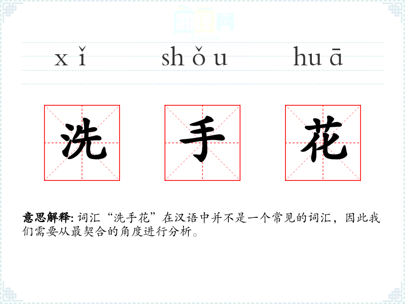 词汇“洗手花”在汉语中并不是一个常见的词汇,因此我们需要从最契合的角度进行分析。