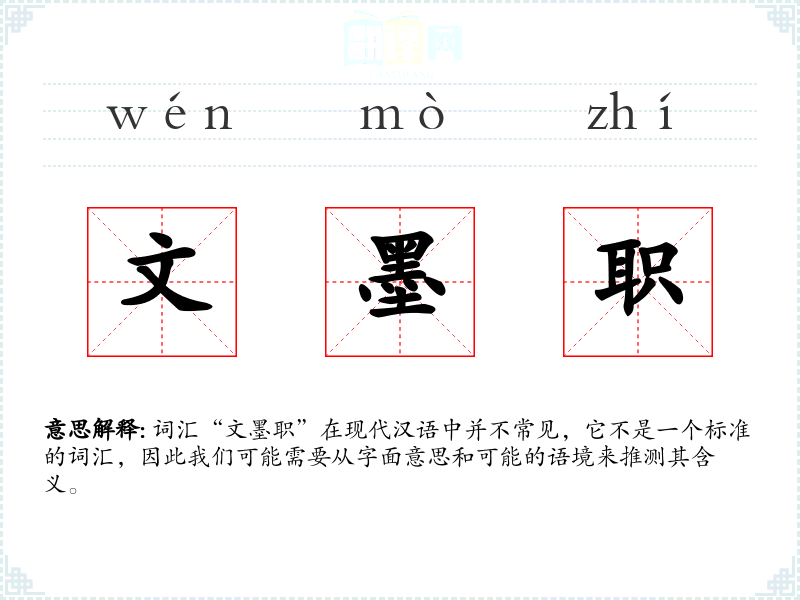 词汇“文墨职”在现代汉语中并不常见,它不是一个标准的词汇,因此我们可能需要从字面意思和可能的语境来推测其含义。
