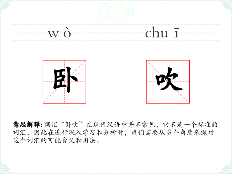 词汇“卧吹”在现代汉语中并不常见,它不是一个标准的词汇,因此在进行深入学习和分析时,我们需要从多个角度来探讨这个词汇的可能含义和用法。