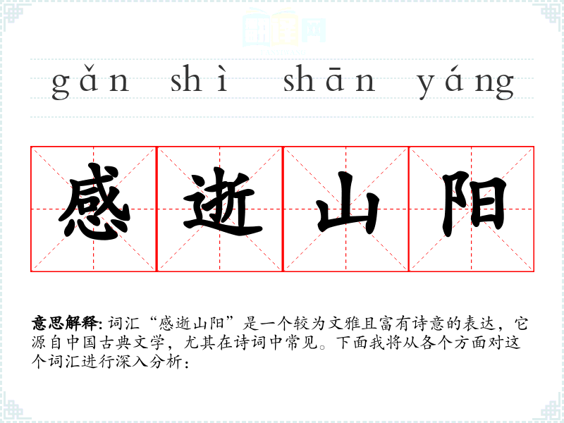 词汇“感逝山阳”是一个较为文雅且富有诗意的表达,它源自**古典文学,尤其在诗词中常见。下面我将从各个方面对这个词汇进行深入分析: