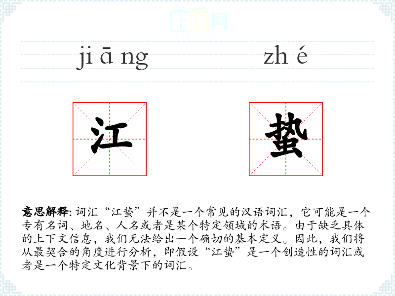 由于“江蛰”不是一个标准词汇,它在不同语境下的使用可能非常有限,或者仅限于某个特定的文学作品、口语交流或专业领域。