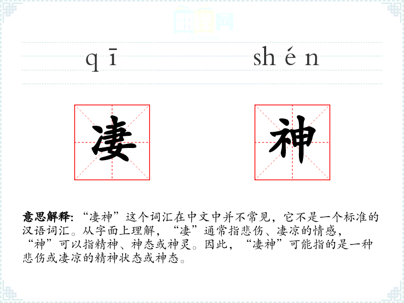 "凄神"的意思解释、凄神是什么意思由翻译网汉语词典查词提供。