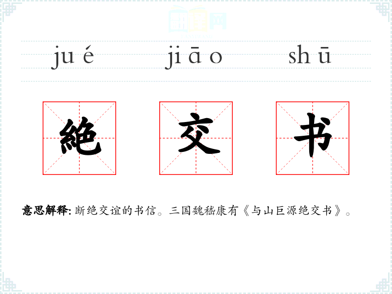 断绝交谊的书信。三国魏嵇康有《与山巨源绝交书》。