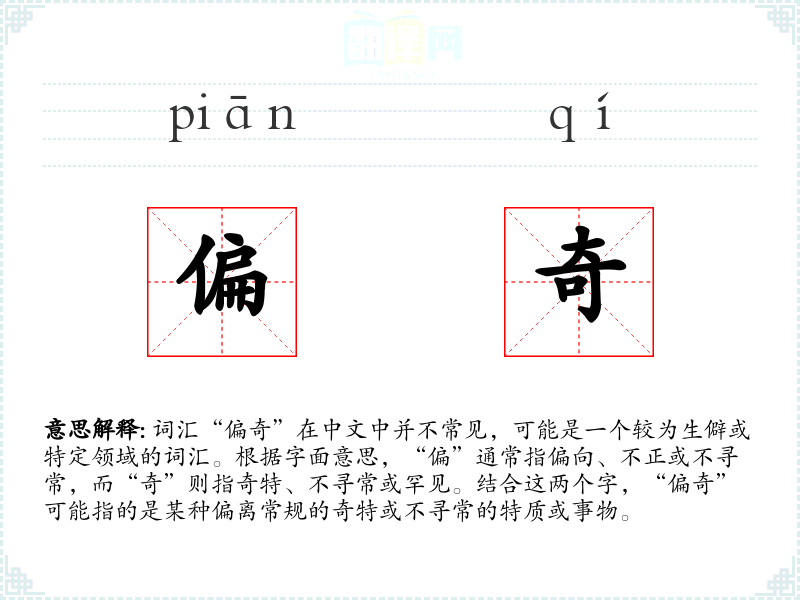 - 文学:在文学作品中,“偏奇”可能用来形容某个角色的独特性格或行为,或者描述一个不寻常的情节或**。