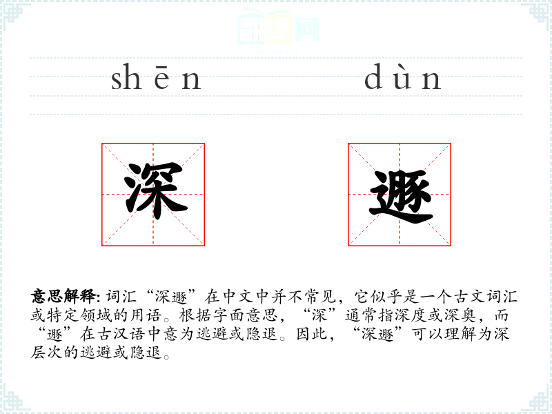 - 词源:“深遯”可能源自古代汉语,其中“遯”字在《易经》中有隐退的含义。