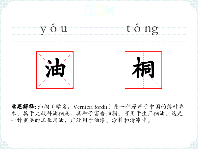 "油桐"的意思解释、油桐是什么意思由翻译网汉语词典查词提供。