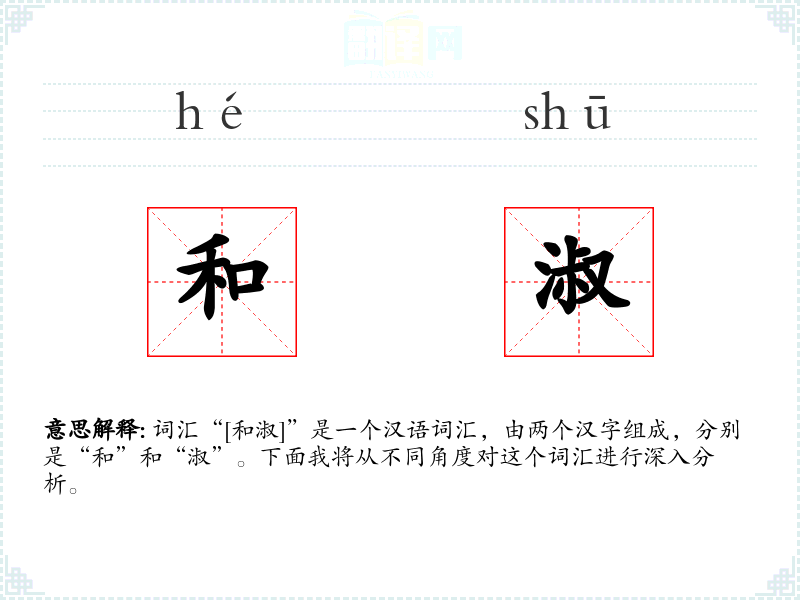 词汇“[和淑]”是一个汉语词汇,由两个汉字组成,分别是“和”和“淑”。下面我将从不同角度对这个词汇进行深入分析。