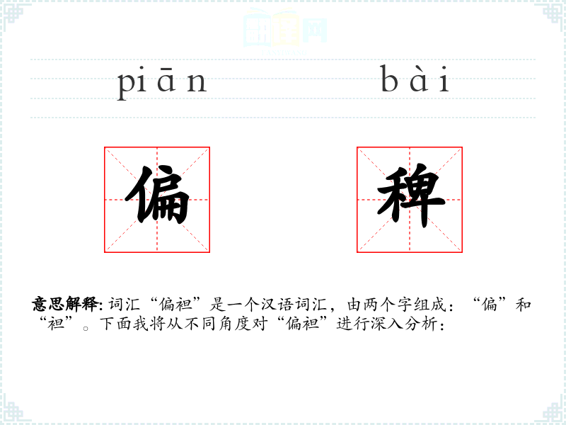 词汇“偏袒”是一个汉语词汇,由两个字组成:“偏”和“袒”。下面我将从不同角度对“偏袒”进行深入分析: