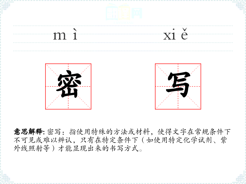 "密写"的意思解释、密写是什么意思由翻译网汉语词典查词提供。