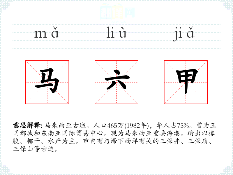 马来西亚古城。人口465万(1982年),华人占75%。曾为王国都城和东南亚国际贸易中心。现为马来西亚重要海港。输出以橡胶、椰干、水产为主。市内有与滞下西洋有关的三保井、三保庙、三保山等古迹。