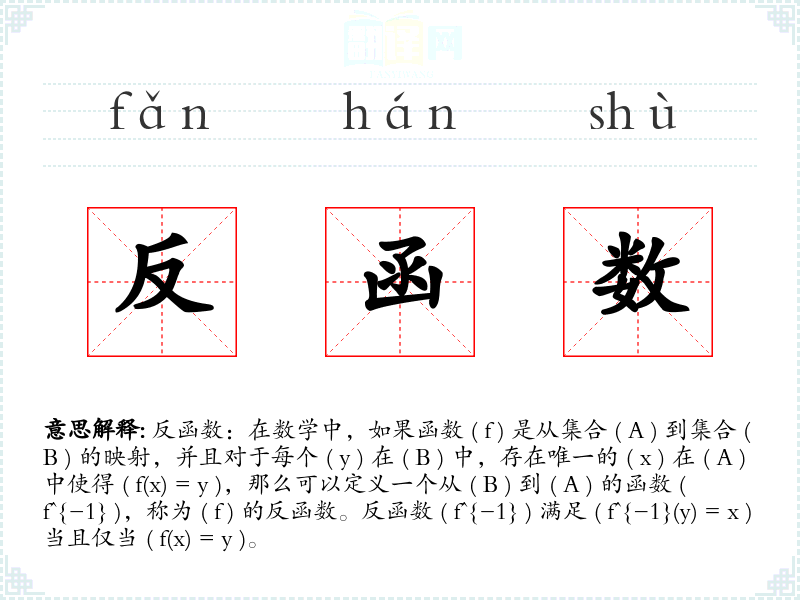 同义词:逆函数、反向映射 反义词:原函数(即没有反函数的情况)