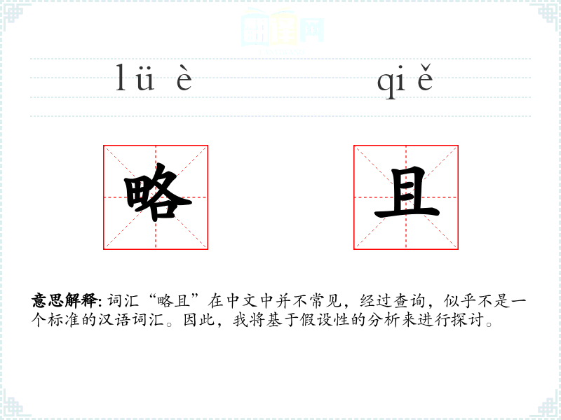 词汇“略且”在中文中并不常见,经过查询,似乎不是一个标准的汉语词汇。因此,我将基于假设性的分析来进行探讨。