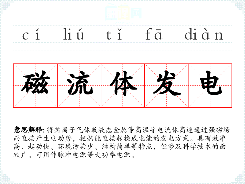 "磁流体发电"的意思解释、磁流体发电是什么意思由翻译网汉语词典查词提供。