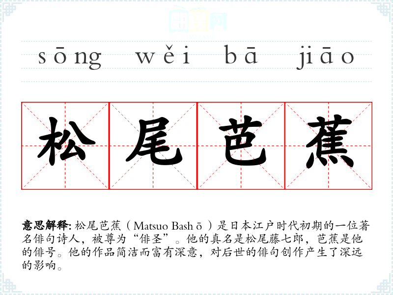 "松尾芭蕉"的意思解释、松尾芭蕉是什么意思由翻译网汉语词典查词提供。